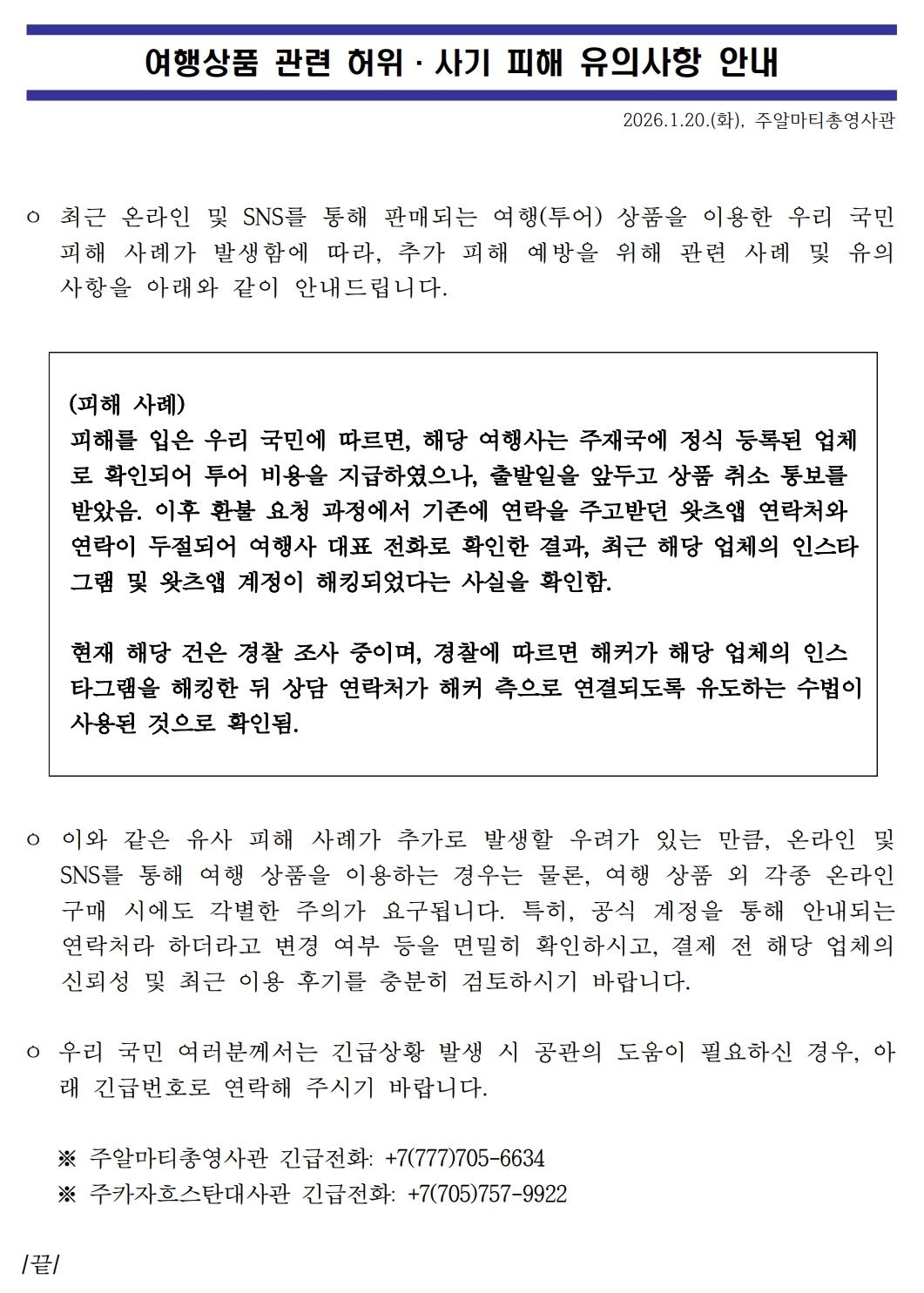 여행상품 관련 허위·사기 피해 유의사항 안내